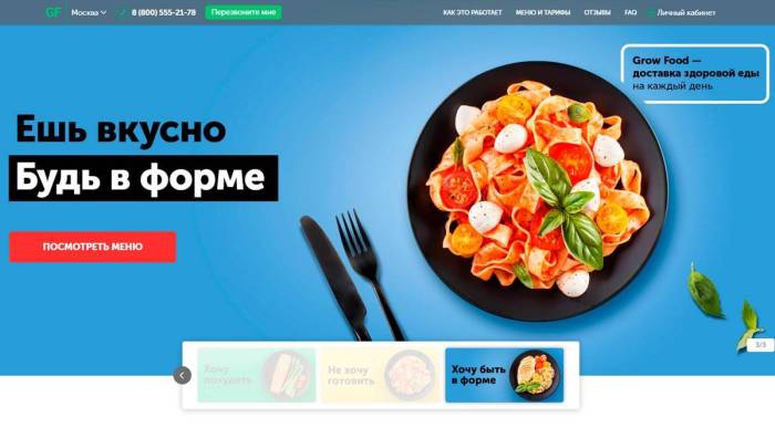Еда с доставкой на дом от Growfood работает в Москве и Санкт-Петербурге с большим выбором меню на каждый день. На сайте вас ждут приятные скидки до 3000 рублей с качественными изображениями еды на завтрак, обед, полдник и ужин.
