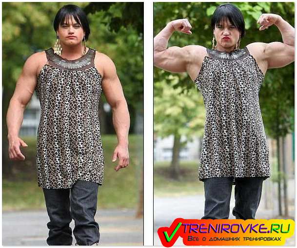 Все еще недостаточно огромный? Так почему же не сделать то, что многие отчаюги сделали при помощи инъецированого масла и силиконовых имплантантов? Один качок из Лонг Айленда не только сделал себя знаменитостью, но и стал героем для тех, кто верит в монстроидность любой ценой. Этот чувак 163 см ростом, заколол столько говна в руки, что смог сделать их 70 сантиметровыми, вдвое больше чем его лысеющая голова размером с орех. Его плечи имеют огромные, блестящие опухоли размером с футбольный мяч , что делает их почти такими же по ширине как у Пола Диллетта.