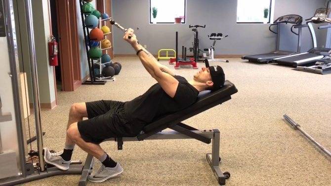 Разгибания на трицепс лёжа на наклонной скамье