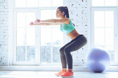 Приседания с гантелями для похудения в домашних условиях выполняются следующим образом:
