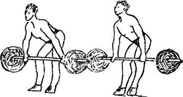 Гриф притягивается к туловищу прямыми руками непроизвольно вследствие напряжения левой и правой широчайших мышц спины; эта мышца, как известно, прикрепляется к гребешку малого бугорка плечевой кости.