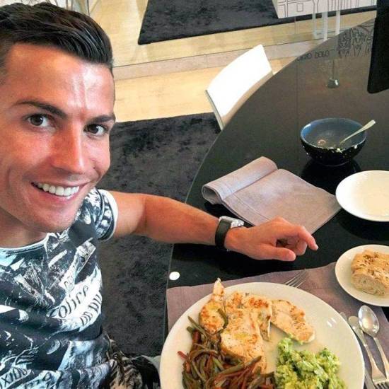 На завтрак Роналду ест ветчину с сыром и нежирный йогурт. Также иногда бывшая звезда «Манчестер Юнайтед» в течение дня может съесть тост из авокадо.