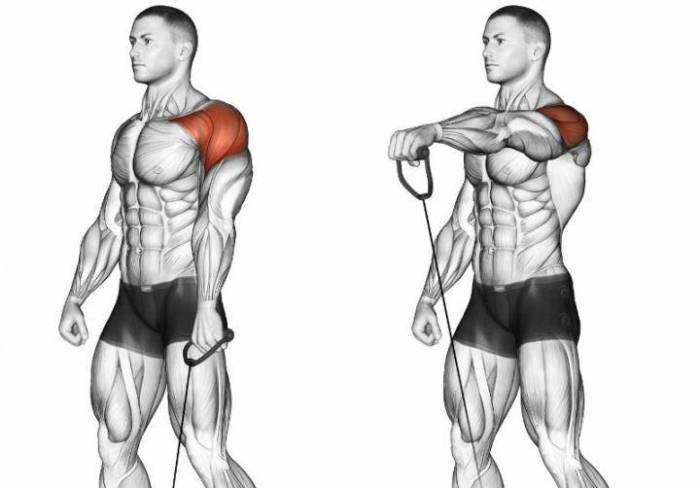 После тяжелой базовой нагрузки необходима точечная проработка каждого из пучков дельт. Для этой цели предназначены изолированные моносуставные упражнения с гантелями или в тренажерах. Разберем наиболее эффективные изолированные упражнения с гантелями и на кроссовере для прокачки отдельных пучков дельт. Используя комплекс упражнений с гантелями, можно проводить качественную тренировку на плечи дома.