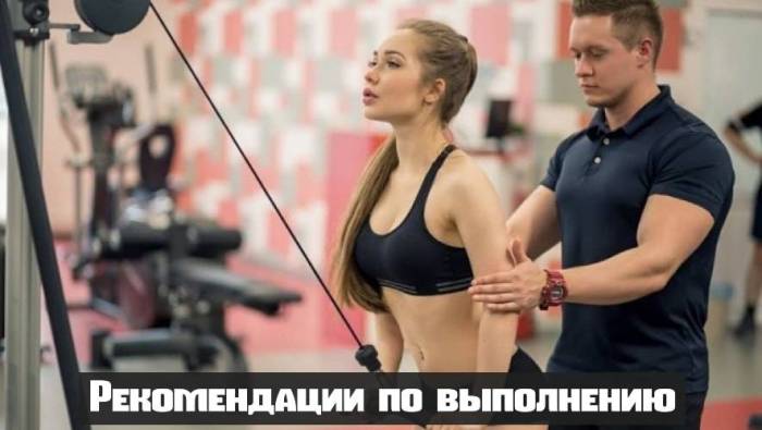 Подъем троса происходит до того момента, пока не почувствуете полное растяжение широчайших мышц. Заводить блок за голову не нужно. Так вы сместить акцент на грудные мышцы и создадите большую нагрузку на плечевые суставы.