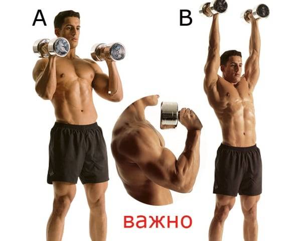Однако, в жиме гантелей стоя, в работе принимают участия мышцы-стабилизаторы, прокачка которых необходима для улучшения баланса, координации и повышения результатов в других упражнениях.