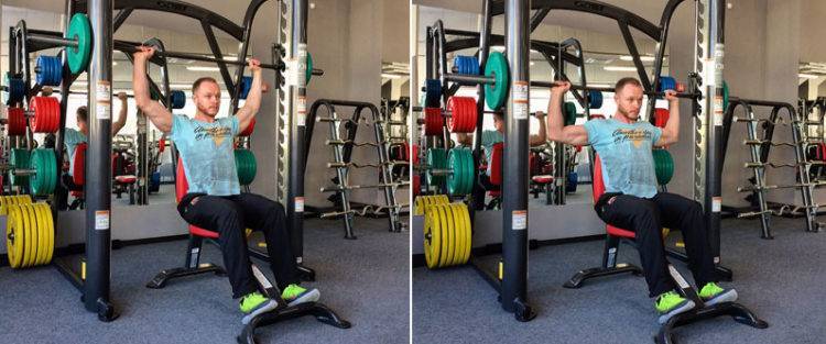 Кроме того, за счет специальных фиксаторов, нет необходимости в страхующем партнере. Техника выполнения упражнения в тренажере Смита такая же, как и со свободным весом сидя. Нет никаких кардинальных отличий.